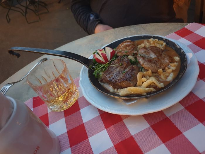 The Stuttgarter Staffel restaurant offers authentic German and European cuisine in an attractive lively atmosphere and modern décor consisting of wooden furniture and traditional white and red tablecloths and patterns. One of the most recommended to try among its signature dishes is roast beef served with sauerkraut, or a meatball dish with potato salad. , or sausage prepared in the traditional German way, and it is worth noting that this restaurant has a patio with a distinctive, traditional rustic feel.