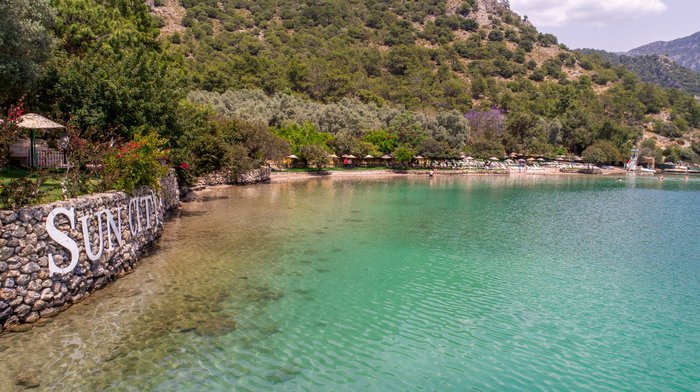 Sun City is a beach club intertwined with history and nature located at the end of Oludeniz Lake in Fethiye, offering you a nice and relaxing atmosphere in the heart of nature, with the best cocktails to enjoy sunbathing on the grass shaded with pomegranate and olive trees, swimming in the calm and clear waters, having drinks in Oludeniz , with high quality music and an atmosphere that makes the sunset fun and special.