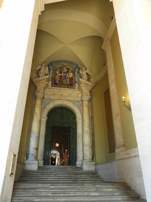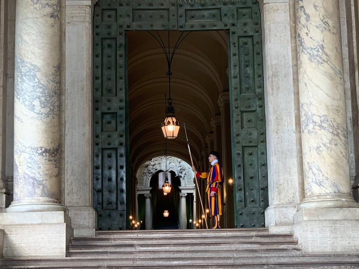 The bronze door has been located inside the Vatican City since the seventeenth century. It is run by Swiss guards and forms the entrance to the Apostolic Palace. This door also allows access to the royal stairs. It is located at the top of a staircase flanked by two large columns of marble and topped by two angelic figures and a large mural of saints and the Madonna and Child. Don't miss the opportunity to take souvenir photos near this iconic landmark.