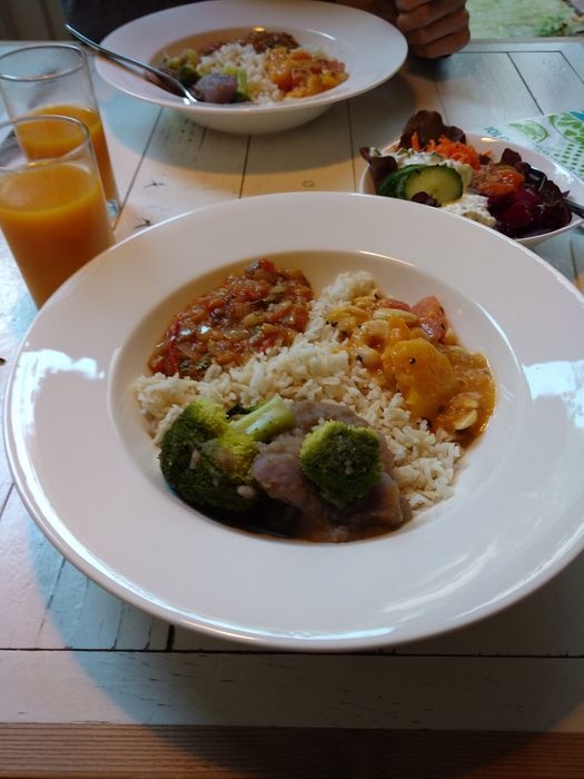 very comfortable place that provides the most beautiful sessions suitable for sitting with friends in a refreshing and lively atmosphere, where pleasant music will make you happy while eating your favorite meal, as for dishes, it offers a wide range of wonderful meals that you can choose from such as rice dishes with fried and seasoned chicken pieces, and dishes Steak and chicken served alongside many sauces, appetizers, salads and crispy potatoes, in addition to being distinguished by the presence of a large list of different desserts such as chocolate cake, cream caramel, and ice cream with dried fruits.