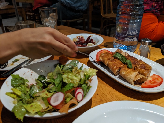 This restaurant has maintained its reputation as an active community center since the days of the war, as this restaurant, located in the center of Al-Hamra Square, hosts regular formal and informal meetings, as well as hosts film screenings, and academic discussions in its library, and in the meeting room on the upper floor, On the lower floor, the restaurant offers a space to sit and relax and eat the most delicious traditional Lebanese meals, with many options of vegetarian and healthy meals, including hummus dishes with mixed grills, fattoush salad, a delicious stuffed dish, and a rice dish with meat, And many other wonderful dishes.