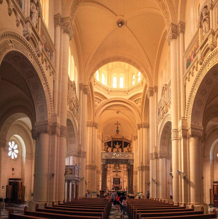 This amazing building located in the west of the island of Gozo is a Roman Catholic cathedral that was established in the year 1575, and it is one of the most beautiful landmarks on the island of Gozo, as it was designed in the neo-Romanesque architectural style, and visitors will find high towers, domes, stained-glass windows, huge arches, and more. The cathedral is located in the open countryside, which will allow visitors to enjoy the beauty of the ancient cathedral while enjoying the beauty of the surrounding nature.