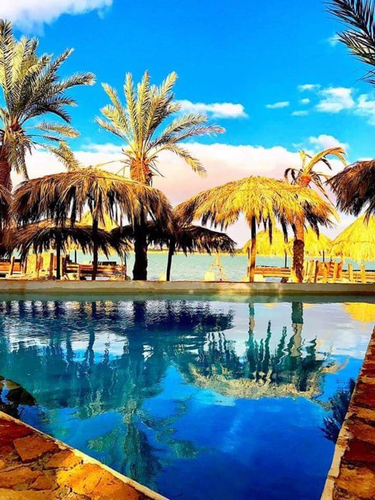 Tyrants Island, is a small private island, located inside one of the natural salt pools in the Egyptian tourist city of Siwa. Inside the island, there is a unique tourist resort, consisting of small beach huts, designed on the beautiful African character, in addition to the private beach that includes comfortable beach chairs. .