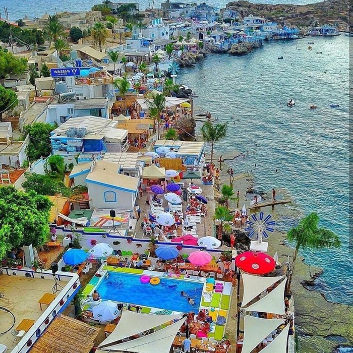 Under the Wind Beach is one of the most famous beaches in the city of Anfeh, or as it is called by the Lebanese Greeks, as it is characterized by chalets and old buildings in white and blue colors, and a large group of cafes and restaurants directly overlooking the sea, which create a magical experience and scenes. The beach water is known for its purity so that you can see the rocks at the bottom of the bottom, and visitors can go to the beach to eat and enjoy the sea and swim in it.
