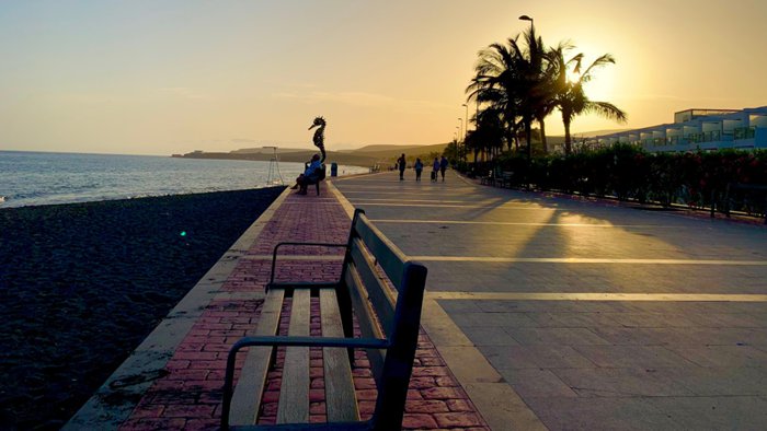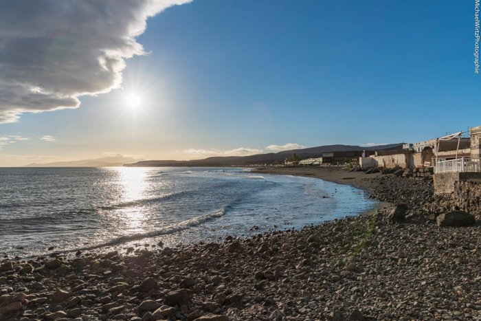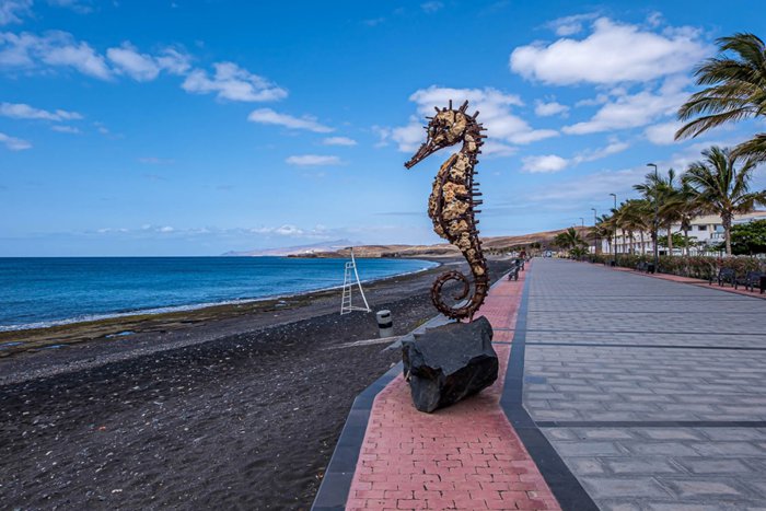 Tarajaljo Beach is located at the mouth of a valley of the same name in the southeast of the island of Fuerteventura. It is a semi-urban beach with calm waters and is one of the largest beaches in the town of Tueneje. It is possible to see some white sand mixed with its black sand, sometimes forming small dunes in the far southwest. It contains There are many restaurants, shops and hotels, and at the bottom of the valley you will find a beautiful palm grove.