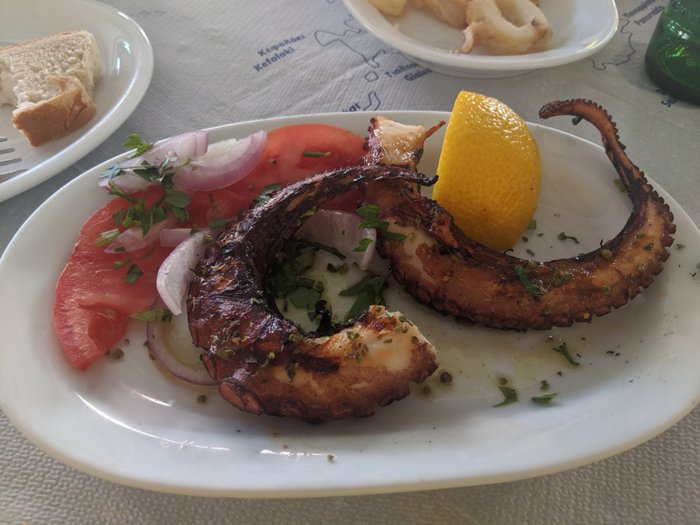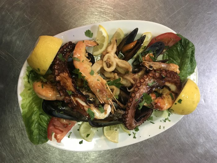 Trata Trawler Restaurant's white and blue interior design is inspired by the colors of the seashore, so customers feel as if they are dining on a boat in the middle of the sea. The restaurant specializes in serving seafood of all kinds and different ways of preparing it. It serves it with fried potatoes or pasta, in addition to local side dishes, salads and delicious appetizers.