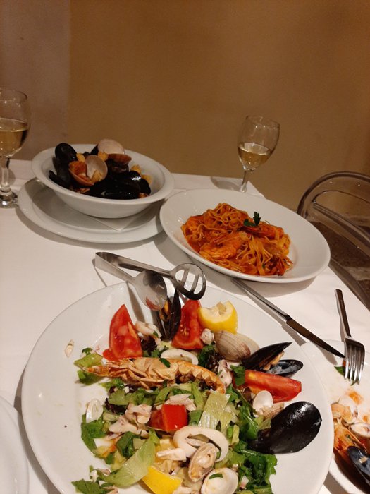 Visitors to the Tavola Calda restaurant are confused when choosing between eating different types of seafood or enjoying the Italian dishes that the restaurant specializes in. Visitors often decide to eat pizza or one of the types of pasta decorated with mozzarella cheese, along with a plate of salad or appetizers, before ending their visit with a piece of the famous tiramisu.
