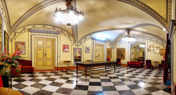 Teatro Saloni Margherita was established in 1898 as a café at that time, not as a theater, and then it was restructured in 1908 to its current form. The greatest artists of the age stood and acted on this stage, such as Marinetti, the actresses Bella Otero, Viviani, and the great actor Petrolini. The theater is also used as a cinema hall and not only as a stage for theatrical performances. It's a very beautiful place.