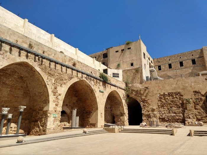 The Knights Tunnel is located in the city of Acre and is about 350 meters long. It was used in the past as an underground passage that connected the castle and the port. The lower part of the tunnel is carved into the rock, and the upper part of the tunnel is built of polished stones with a cylindrical arched dome. It was also a temple for the Knights Templar, a military band of monks that was working to guard the pilgrims who came from Europe to Palestine in order to visit the holy places.