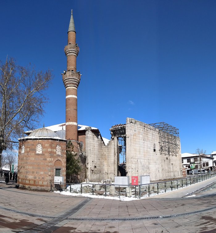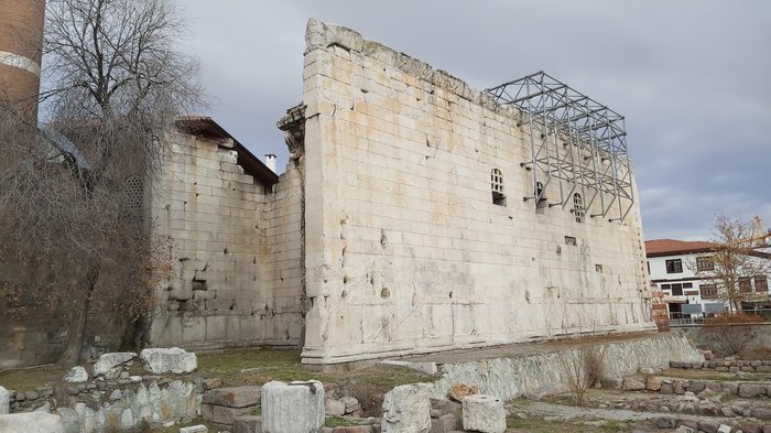 The Temple of Augustus and Rome was established in Ankara after the Roman Emperor's conquest of central Anatolia in 25 BC. It is characterized by a different architectural design based on a scheme called false. Instead of the double column system in the temples, it was decided to create a single row in order to increase the internal space. Distinctive drawings and motifs were engraved. On its internal walls and external facades, in a majestic and distinctive view. And due to the factors of time, wars and conflicts, nothing remains of this architectural masterpiece but remnants, indicating the greatness of history.