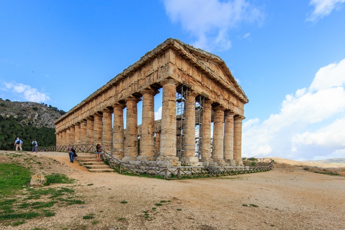 Sagesta was one of the principal cities of the Elemis, one of the three indigenous peoples of Sicily. Other major cities of the Elymians were Eric and Entella. It is located in the northwestern part of Sicily in Italy, near the modern commune of Calatafimi-Segesta in the province of Trapani. The Hellenization of the region occurred very early on and had a profound impact on its people. On a hill outside the site of the ancient city of Segesta is an unusually well-preserved Doric temple. It is believed to have been built in 420 BC by an Athenian architect, although the city did not have a large Greek population. The temple has six out of fourteen pillars on a plinth measuring 21 by 56 metres.