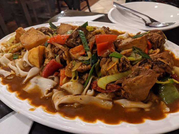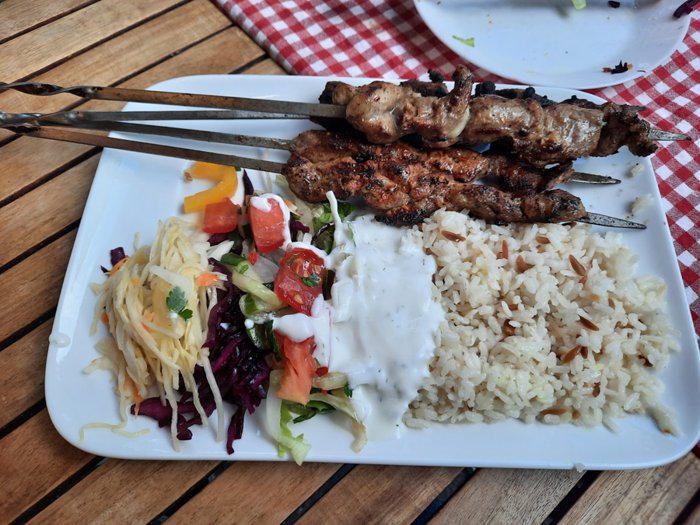 Tengri Tag Uyghur is a small restaurant with modest décor, an intimate atmosphere, excellent service, low prices, and irresistible food. It is a popular restaurant for many people who want to try Turkish and oriental dishes, as it serves kebabs, shish tawook, delicious doner, grilled lamb ribs, falafel, and more. One of the dishes prepared with great precision and great care.