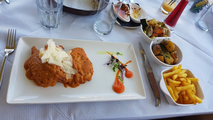 This restaurant is located directly on the shore of the Mediterranean Sea, and provides its visitors and customers with amazing panoramic views. It is a very spacious restaurant where large groups of individuals can have a great time. The restaurant offers a long menu with many delicious dishes from the Mediterranean and local cuisines. The menu includes a variety of options suitable for everyone, including seafood, vegetarian and gluten-free options. Among the dishes it serves there are delicious lobster, seafood platter, steak, Caesar salad and many more.