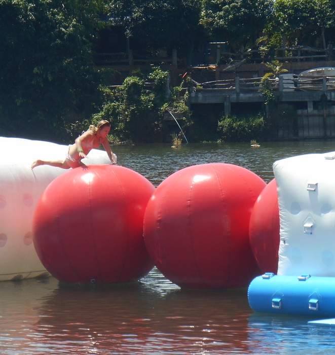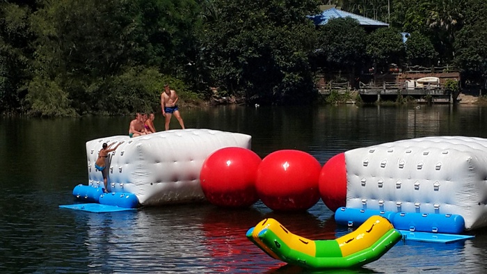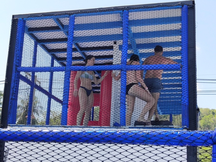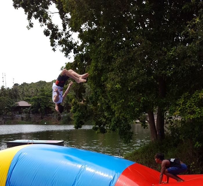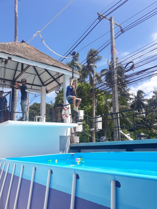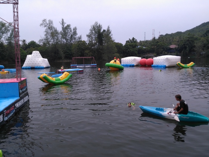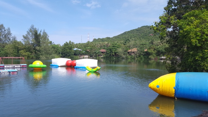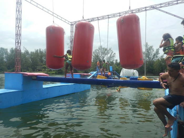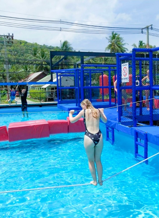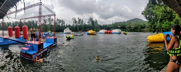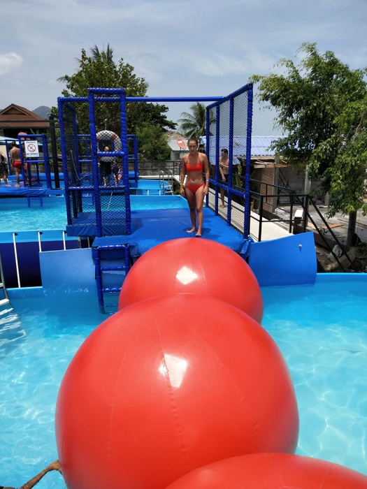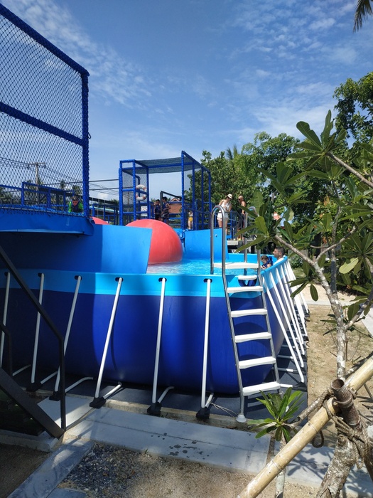 Phangan Challenge is an epic water-based thriller set on the tropical paradise island, Koh Phangan, in Thailand. Where the place allows you to test your skills and discover how quickly you can complete the course full of vitality and excitement, or just try for fun. The course consists of a rope swing, stepping stones, monkey bars, rolling barrels, a climbing mountain, balance beams, seesaws and big red balls. They have a wonderful little restaurant that serves a delicious menu of meals and cocktails every day, where you can take a break after your workout