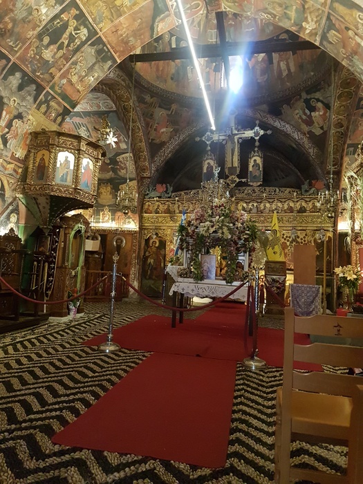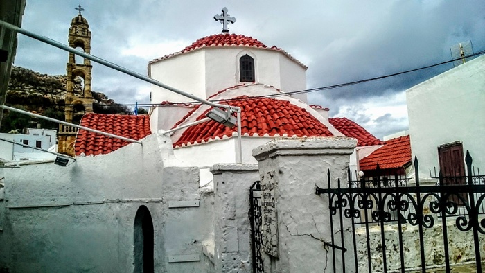 This ancient church - which was built in 1300 - is one of the sites that you must visit, as it will captivate you with its charm as soon as you see it, as it is surrounded by magnificent and majestic high walls. One of its most prominent external features is the towering stone bell, which is typical of the Dodecanese churches. The building was designed in the shape of a cross with an octagonal dome, whitewashed walls, and a roof of red Byzantine tiles. Inside the church, there is a wonderful pebble mosaic floor, ornate wooden icons, in addition to the bishop's throne, while it is topped by large bronze candle chandeliers. There are also 19th-century frescoes depicting biblical scenes.