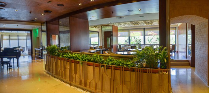 The Grill restaurant specializes in serving grilled dishes of various types of meat, including lamb, beef, chicken and fish, which are served with special sauces for the restaurant, appetizers and salads, in addition to drinks, and then followed by desserts. The restaurant includes in its comfortable indoor sessions, a distinctive view from Glass windows on the Nile and the opposite bank.