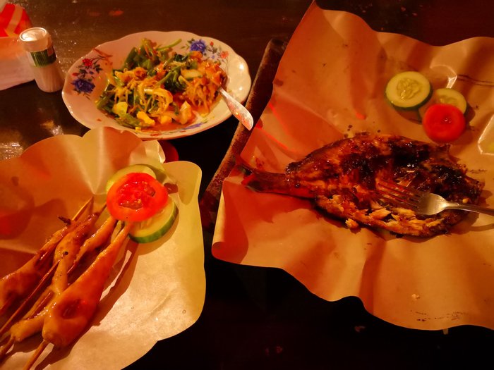 The Leaf Café in Senggigi serves a variety of local Asian and Indian dishes. It specializes in serving grilled seafood in front of the café's visitors. You can choose the piece of fish you want to eat and the chef prepares it in front of you. The seafood is brought daily to be fresh and delicious. Vegetarian options are also available Such as the local gado-gado dish, in addition to a group of local sweets, at affordable prices for tourists. The place is characterized by its simplicity, popular character, and helpful staff, which will make your experience special.