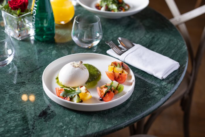 The Orangery restaurant in the Emirates serves dishes from international and local cuisine of great quality, and their menu includes a variety of dishes and meals that are difficult to choose from, in addition to a wide range of desserts, drinks and iced tea, and among the best-selling items in it are bread with butter, watermelon juice with mint and tea Peach Organic Chamomile.