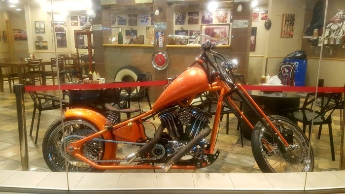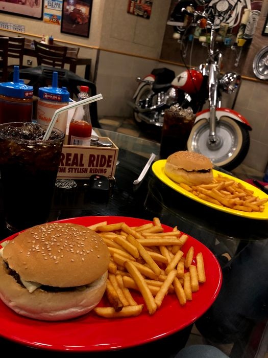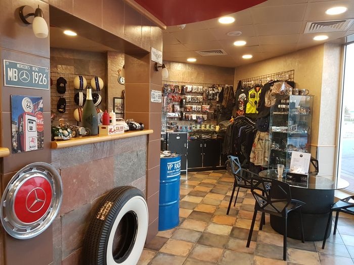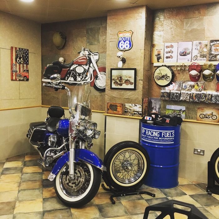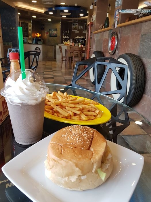 An ideal cafe for motorcycle and racing car lovers, as the place has a beautiful decor, its interior walls are decorated with helmets, tires, pictures of bikes and their famous drivers, and everything related to them. It serves fast and light meals such as chicken sandwiches, burger sandwiches, fried chicken pieces, and sausage sandwiches, as well as many side dishes such as onion rings and french fries, as well as cold and refreshing drinks of all kinds.