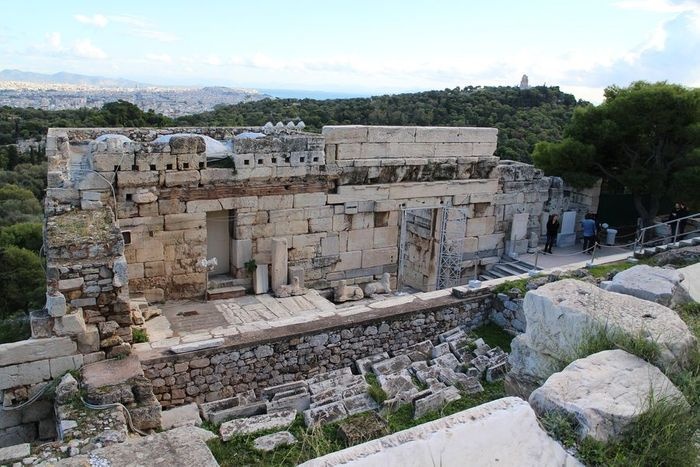 The Dionysus Theater is the most famous among all the Greek theaters in the city of Athens. In the fifth and sixth centuries, the amphitheater was made of wood only, and after its collapse, a stone amphitheater was built, sufficient to accommodate 13,000 people. As for the orchestra, which was originally circular, it has been changed. During the reign of Nero, it was built into a semi-circle covered with a multicolored marble pavement in the middle, and in this theater the plays of Aeschyles, Sophocles, Euripides and Aristophanes were perpetuated.