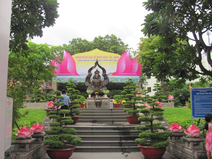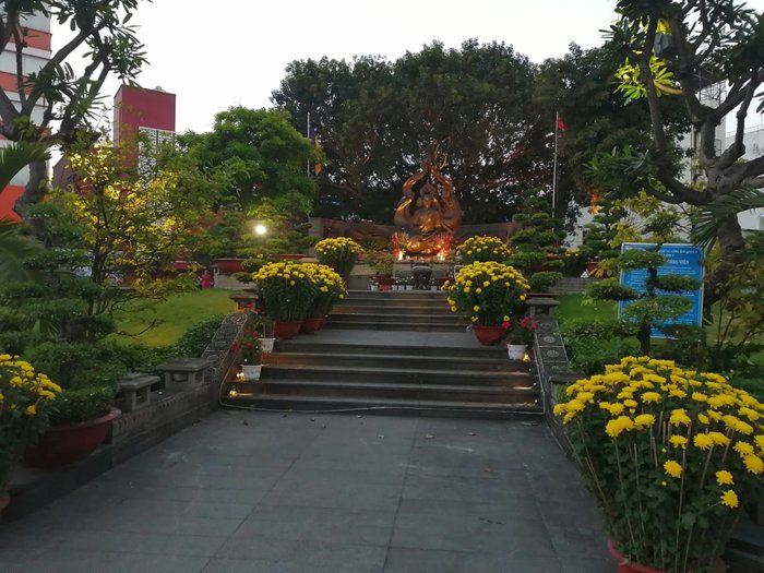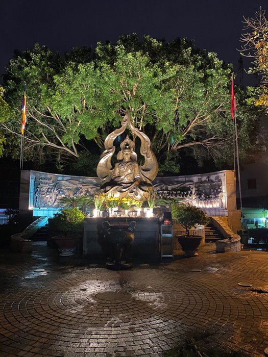 The Thich Quang Duc Memorial in Ho Chi Minh City honors Buddhist monk Thich Quang Duc's last heroic stand in the face of religious discrimination, immolating himself in the middle of a busy road to protest the murder of Buddhists by then President Ngo Dinh Diem. Dinh Diem), and his bravery is immortalized by this monument which shows him enshrouded in flames in front of a bas-relief.