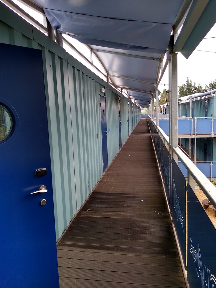 Thorpe Shark cabins are among the most beautiful and strange places to stay in the English county of Berkshire, where they are distinguished by their exterior design in the form of a huge shark, which guests enter through its mouth and between its teeth, so that each of them reaches his own cabin, which gives the resident a feeling that he is under water, as its walls are decorated with drawings and pictures for different types of fish and marine plants.