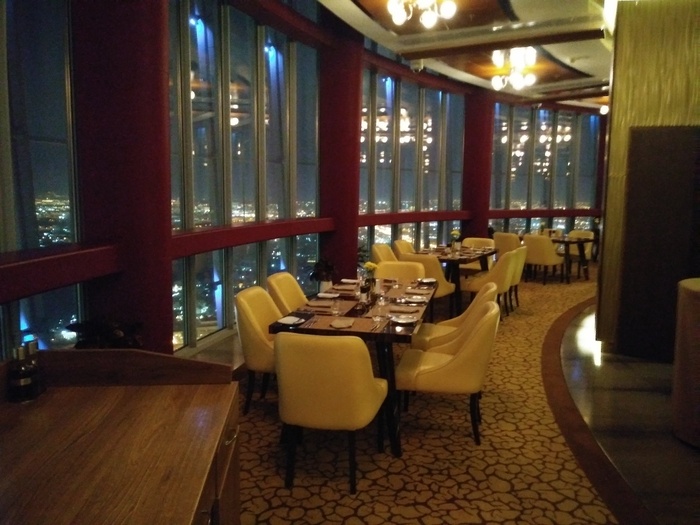 The Three Sixty is the only revolving restaurant in Doha, which is located on the forty-seventh floor, offering a stunning view of the city. The restaurant serves delicious food and the finest dishes prepared by specialized chefs such as fried calamari, smoked salmon and fried duck, and on Tuesdays they serve special Greek dishes such as baked feta cheese And Musaka and Souvlaki, which are presented with piano performances.