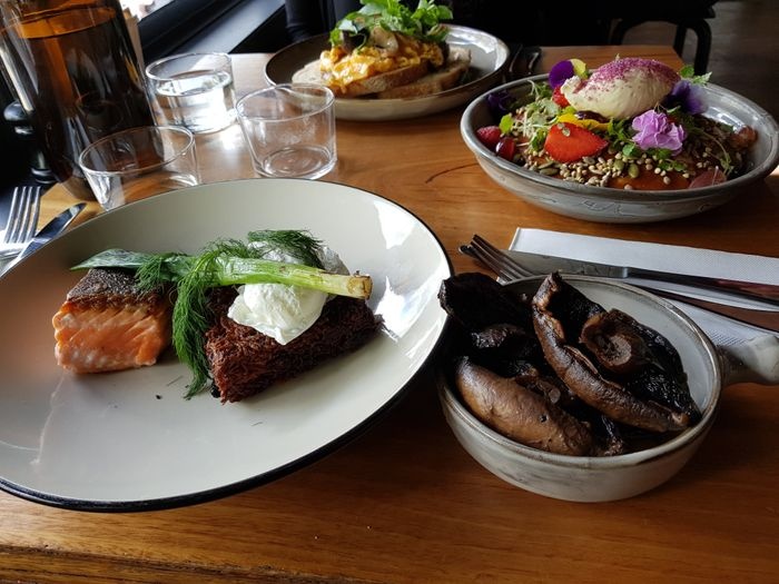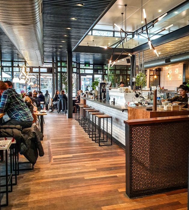 distinctive modern cafe, with modern and elegant wooden décor, in addition to its comfortable and bright atmosphere, amidst spacious indoor seating areas, suitable for groups, with the possibility of outdoor seating, in a garden surrounded by green trees. In this café, you can enjoy a cup of coffee, which is roasted in the café, to serve you the finest types of delicious coffee. A range of delicious meals are also available, which are served in innovative ways, including delicious burgers, quinoa salad, and toasted bread sandwiches with grilled vegetables. And boiled eggs, and sausage, and salmon slices, in addition to a variety of sweets, and many more.