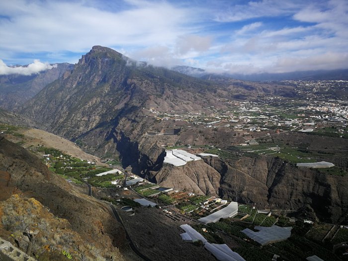 The Torre del Time observation platform overlooks one of the most amazing views on the island of La Palma, which is the vast Aridan Valley covered with banana plantations that ends in the charming port of Tazacort alongside the deep Las Angustias Strait. You can also see El Hierro Island on clear days, as it is located at an altitude of 700 meters Above sea level, it can be reached on foot by a steep three-kilometer rocky path that meanders from the ancient dock of Tazacorte on the coast.