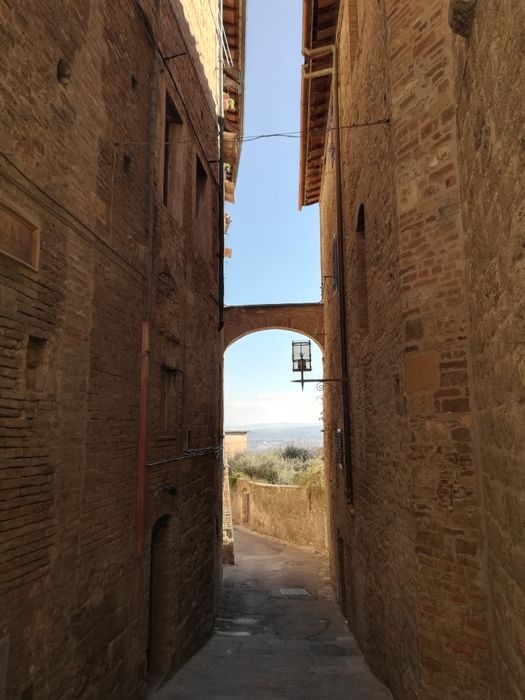 The Devil's Tower is one of the remaining 14 towers out of 72 towers dating back to the medieval period in San Gimignano, and these towers were a symbol of wealth and power among the wealthy families of San Gimignano. The Devil's Tower is located at the northernmost point of Piazza della Cesterna, and is part of the Palazzo de Cortese. Its construction dates back to the twelfth century AD, and the name of the tower is linked to a legend that says that the king, upon his return to the city, noticed that the tower differed in height as a result of direct satanic interference in it.