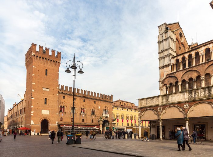 The Town Hall Square is located in the heart of the city, and it is one of the destinations that cannot be missed in Ferrara, due to its wonderful historical character, and the surrounding buildings, arches, domes and marble windows with beautiful Gothic designs dating back to the Middle Ages and the Renaissance, in addition to what It is surrounded by more than wonderful attractions, shops, cafes, and cafes.