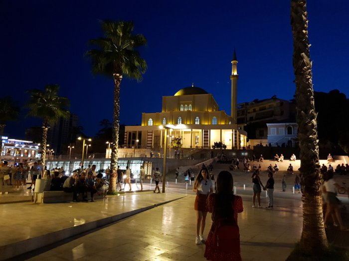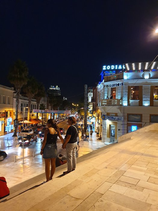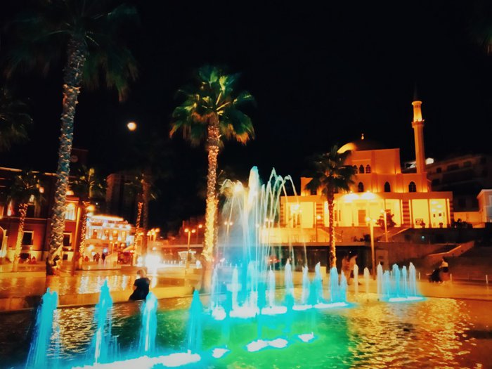 The town square is an open square in the center of the city, near the water fountain, and many restaurants, cafes, and shops around. Individuals can sit on the terraces in the square, to watch the city and enjoy the outdoors, especially in the evening, when the buildings are lit and the streets are lively and full of people.