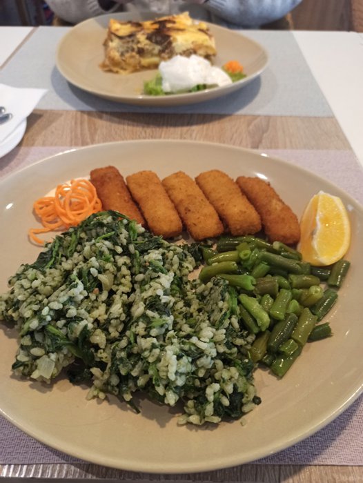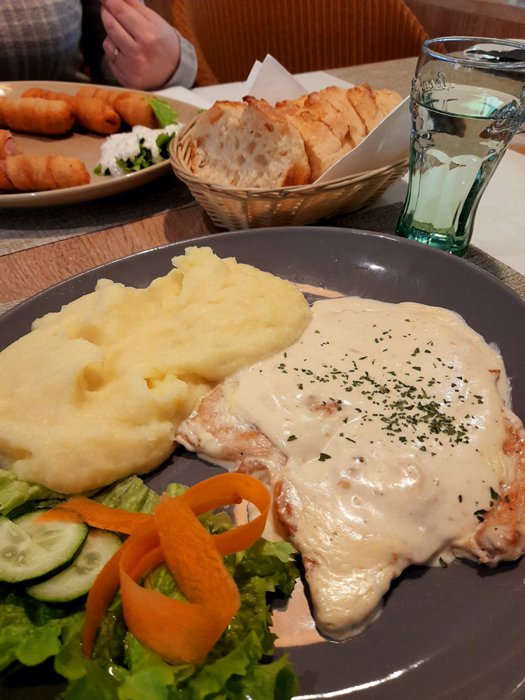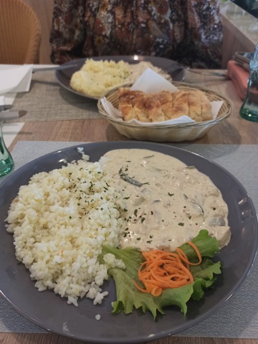 Comfortable seats in the hall of the Trattoria Atrig restaurant accommodate large numbers of groups and families, who come to the restaurant to eat various dishes from various grills, whether chicken breasts, sausages, steaks, etc., in addition to chicken breasts in white cream with mashed potatoes, meat soup with Peas and potatoes, minced meat pastries, and many other delicious options.