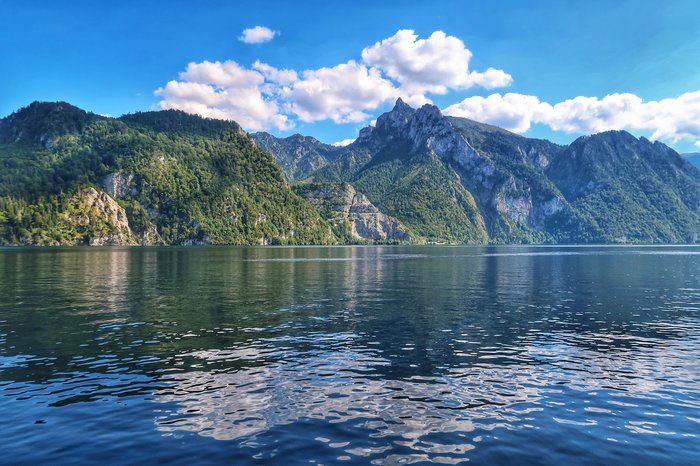 Lake Traunsee is located in the Upper Austria region, as the city of Gmunden is located at the northern end of it, while the town of Ebensee is at the southern end of it, and its surface area is about 24.5 square kilometers, and its deepest point is about 191 meters; Which makes it the largest and deepest lake in Austria, and the lake is characterized by a charming nature, as it is surrounded by trees and plants and a number of small villages and towns, and it is a popular tourist destination, especially in the summer; Tourists enjoy swimming, jogging and walking trails in the area.