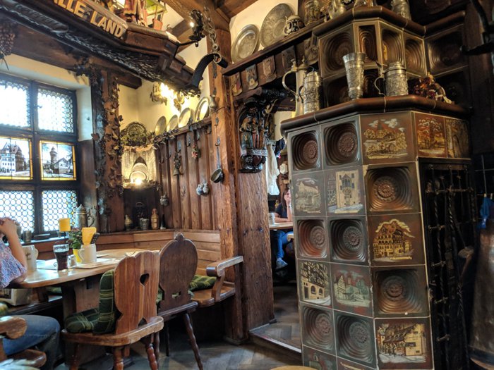 Trudelstuben Restaurant is 5 minutes away from the City Market and the Town Hall, which makes it a potential destination for many shoppers and tourists. It serves a wide range of regional cuisine in a cozy and warm environment thanks to old brick stoves, and with excellent service. Its menu contains grilled sausage and salmon. Smoked trout, roast duck breast, some vegetarian dishes, beef steak grilled on a hot stone and more are served with local beer.