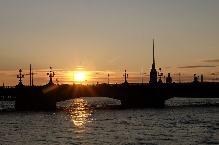 The Trinity Bridge is called by many names, including the "Trinity Bridge", "Truistics Bridge" and "Equality Bridge", and it is very famous due to the fact that it is the third permanent bridge that passes across the Neva River in the Russian city of St. Petersburg. It was built between 1897 and 1897. 1903, and its length is about 582 meters, and it gained its name from the old Trinity Cathedral that was located on the northern side of the bridge.