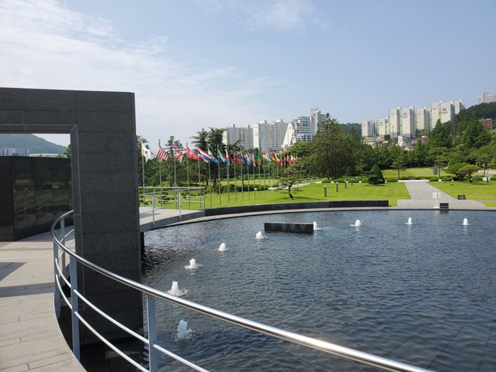 The United Nations Memorial Cemetery in Busan honors UN soldiers from 16 countries and UN aides from five countries who died in action during the 1950-1953 Korean War. It is spread across a grassy plain of 135,000 square meters. Some notable sites and memorials include the Memorial Service Hall. The memorial hall, two Turkish monuments, the Greek monument, the Australian memorial, the British General Wealth memorial, and two ponds.