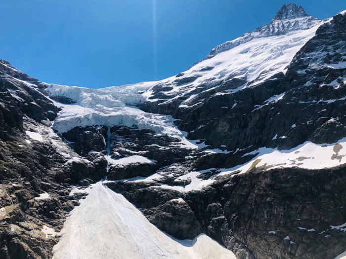 Upper Grindelwald Glacier is a glacier in the valley south of Grindelwald on the northern side of the Bernese Alps, it is about 6 km long and covers an area of about 10 km. The Upper Grindelwald Glacier originates from a vast snowfield and is one of the lowest glaciers in the Alps. This area is characterized by the beauty of its nature, as many tourists go on long hiking trails to reach this point, and take beautiful souvenir photos.
