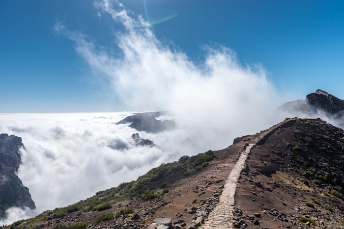 Verida do Areiro is a 7km nature trail that takes about three and a half hours to walk, connecting two of the highest peaks of Madeira; Pico Ruivo (1,862 metres) and Pico do Arero (1,817 metres), an amazing course that includes interesting tunnels and some steep slopes with great views of the central heart of the Madeira Island mountains and the natural surroundings.