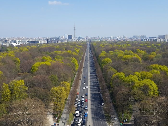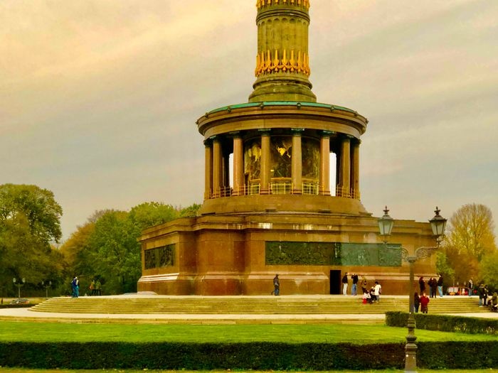 The Victory Column is a monument in Berlin, designed by Heinrich Strack after 1864 to celebrate Prussia's victory in the Franco-German War, and moved to its current location in 1938. Visitors can climb 270 steps to the top for great views of the city. All of Berlin from the top of the column, and it is worth noting that this column bears at its end a golden statue of a woman with wings representing victory.