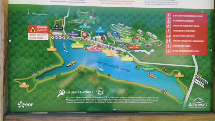 Lake Vie Forge is located in the heart of the Ardennes mountain range, 20 km northwest of Charleville-Mézières and a few steps from the Meuse Valley. It covers an area of 150 hectares and is surrounded by a picturesque forest that gives a beautiful touch to the place. The lake is also an ideal place to enjoy moments of relaxation and tranquility. Its beautiful sandy beaches invite visitors to swim and practice marine activities. In addition, the lake offers many recreational possibilities that include a recreation center offering introductory sailing courses for children, a 3-star campsite, an inflatable theme park, zip lines and a marine equipment rental centre.