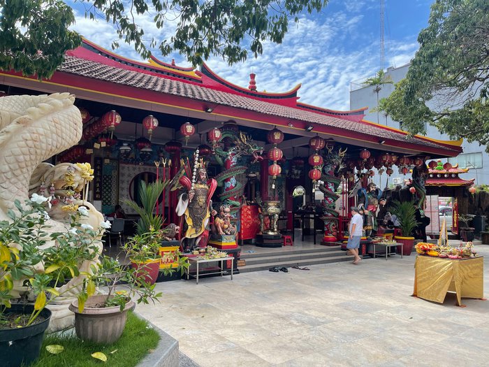 The Vihara Dharmayana Temple is an ancient Chinese Buddhist temple that has a beautiful Chinese-style architectural design with lanterns, decorations, amazing murals, and red walls. It was built in 1876 AD in Kuta on the island of Bali. It was visited by the 14th Dalai Lama, and is located 1 km away. Just one part of the coastal strip, it gets especially crowded during the Lunar New Year.