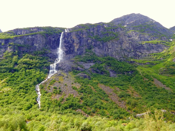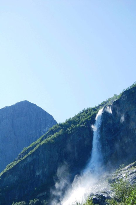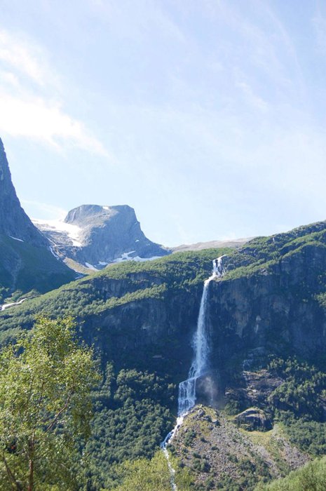 Every year a large number of people travel to the Klivafussen and Briksdal glacier without noticing that there are more majestic natural attractions in the surrounding areas. Dozens of waterfalls (named and unnamed) flow down the mountain from the snow melted from the glaciers. The most famous of these waterfalls, and a place that should not be missed, as the pure water rushing from the top with great force will form a scene that visitors will not want to miss the opportunity to see!