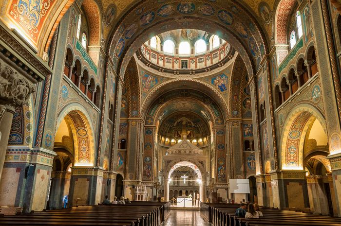 After the Great Flood of 1879 destroyed Szeged, the townspeople decided to build the majestic Szeged Catholic Votive Church in 1913. Today, it is considered the fourth largest church in the country. Its architecture is a mixture of Romanesque, Gothic, and Oriental elements. It also includes 9,040 pipes and an image of the Virgin Mary. Dressed as shepherds, as well as the "Christ on the Cross" statue by János Fadrusz, which won the main prize at the Paris Exposition Universelle in 1900, the cathedral has been expanded with new spaces since 2016. In addition, the church contains A multi-functional exhibition area, and an information office, an art shop, and a library have been set up in the basement.
