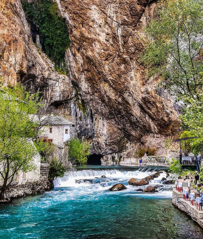 In Frollo Restaurant, you will not believe what your eyes will see of the beautiful nature of Bosnia and Herzegovina in the city of Mostar, as it is located beside the source of the Buna River near the amazing Blagaj Tikija Monastery, and provides a menu that includes many delicious traditional dishes such as trout and chicken curry, in addition to a group of Refreshing drinks and juices.