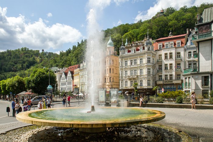 Fridelny Colonada is a natural hot water spring located at the bottom of an open concrete building. It includes 5 water fountains dating back to the sixteenth century. Approximately 2000 liters of mineral water is pumped per minute. This natural water is used in treatment. , by locals and tourists, as its temperature ranges between 72 and 57.