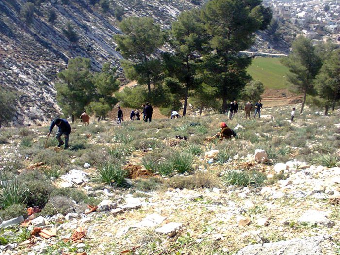 Wadi Al-Qaf is located six kilometers northwest of Hebron, and it is considered the largest natural reserve in the West Bank, and its beauty and roughness of its trees go back hundreds of years. 4,600 dunums of state land, and the cultivated area is about 2,800 dunums, and includes different types of trees, including pine, cedar, oak, hawthorn, and others.