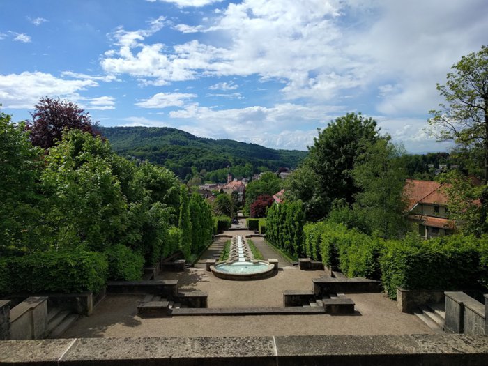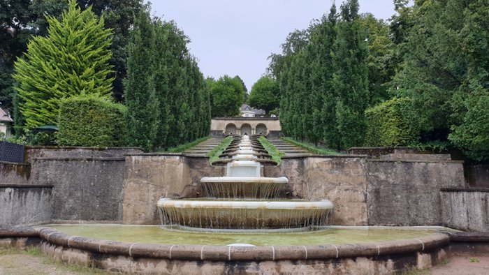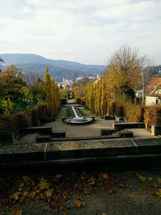Paradise Water Art Garden is a not-for-profit association dedicated to the maintenance, preservation and restoration of this exceptional garden. It is a water art installation at a height of 40 metres, surrounded by symmetrically arranged villas and offering impressive panoramic views of the old town, church tower and dense forests. This garden has a design and style similar to the style of Italian gardens, and it must be noted that it resembles the fountain depicted in Konrad Ferdinand Meyer's poem "The Roman Fountain".