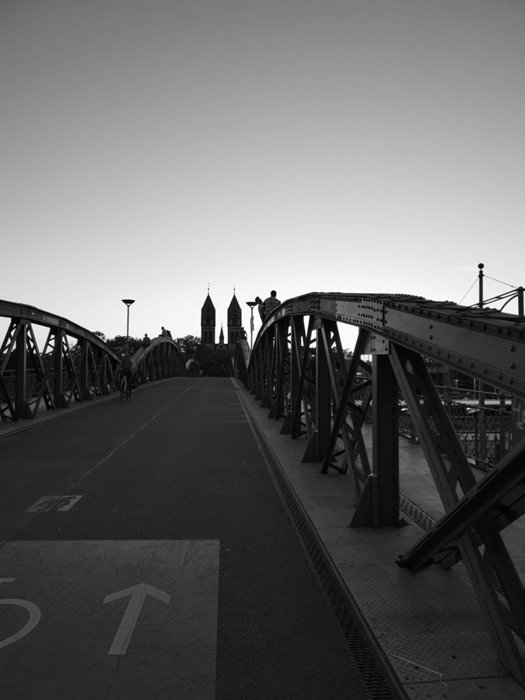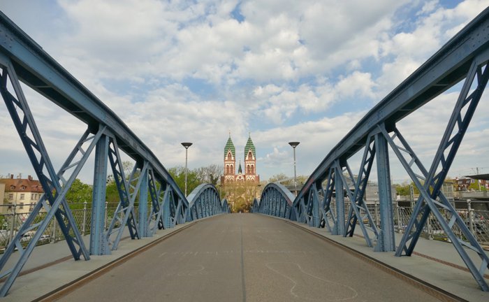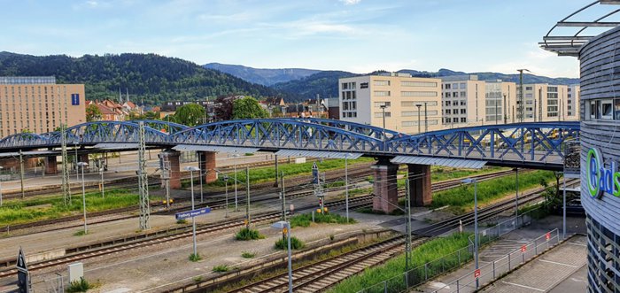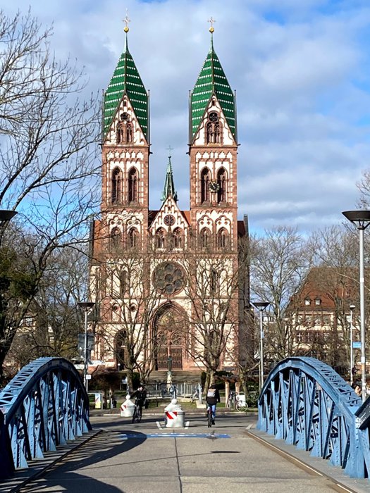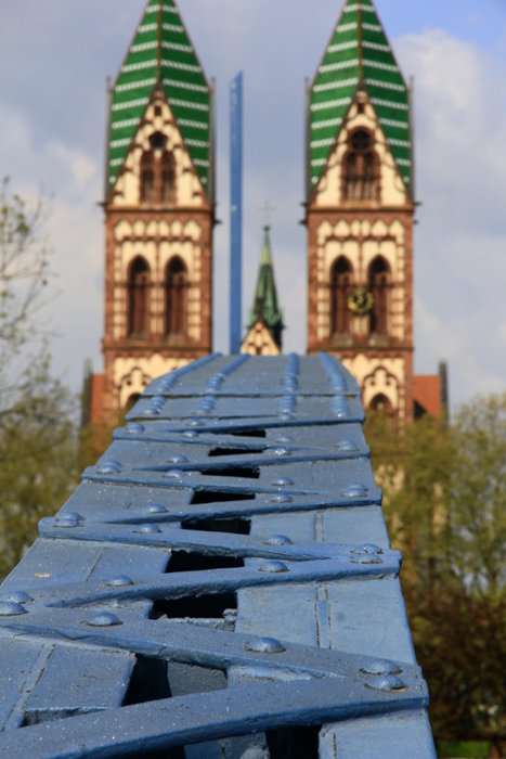 Since the link between the Stohlinger district and the Old Town was closed to cars in 1980, the Wieweli Bridge has become a popular spot and is one of the most important links from West Freiburg to the city center for pedestrians and cyclists. About 8,000 people pass through the iron lattice bridge, which was built in the late 19th century every day. It is one of the last remaining bridges of its kind in Germany, and is particularly distinguished by its curved arches and blue colour.