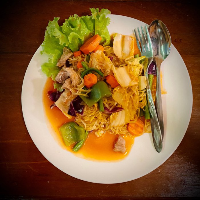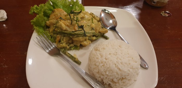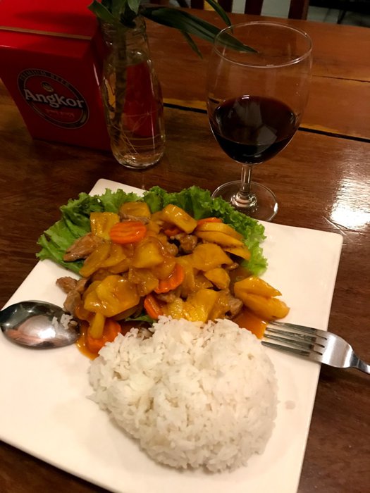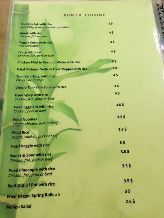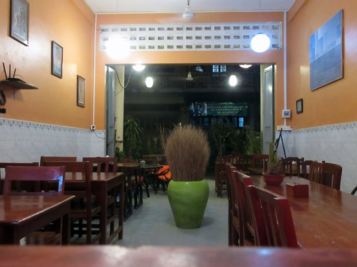 Wood House Restaurant is located in Battambang, and is distinguished by its friendly staff and great service. It is famous for serving local Khmer and Western cuisine along with vegetarian options, such as fried rice with eggplant, noodles, amok dish with chicken, meat or fish, and chicken curry. Breakfast food such as croissants.